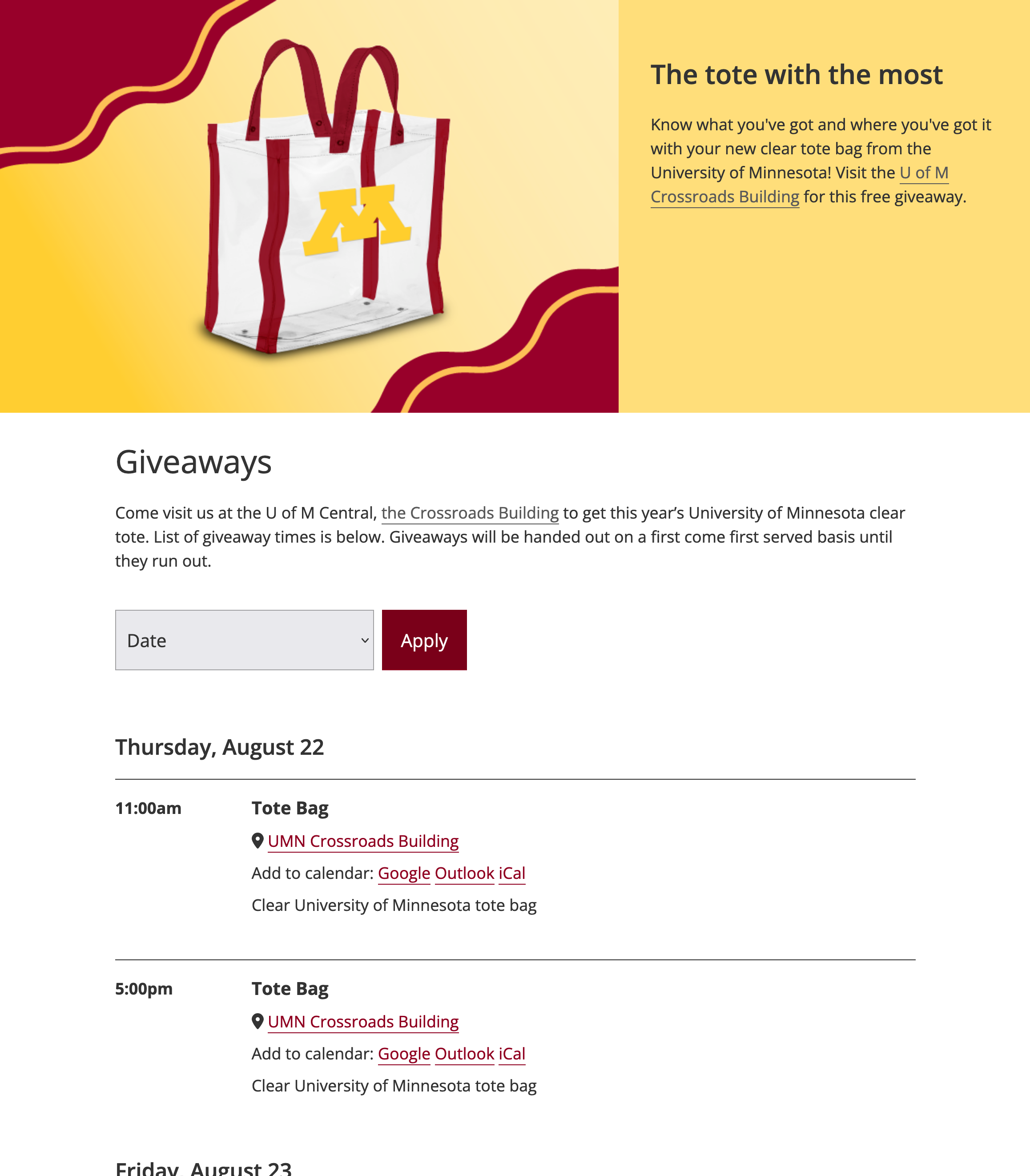 Filterable Events & Giveaways